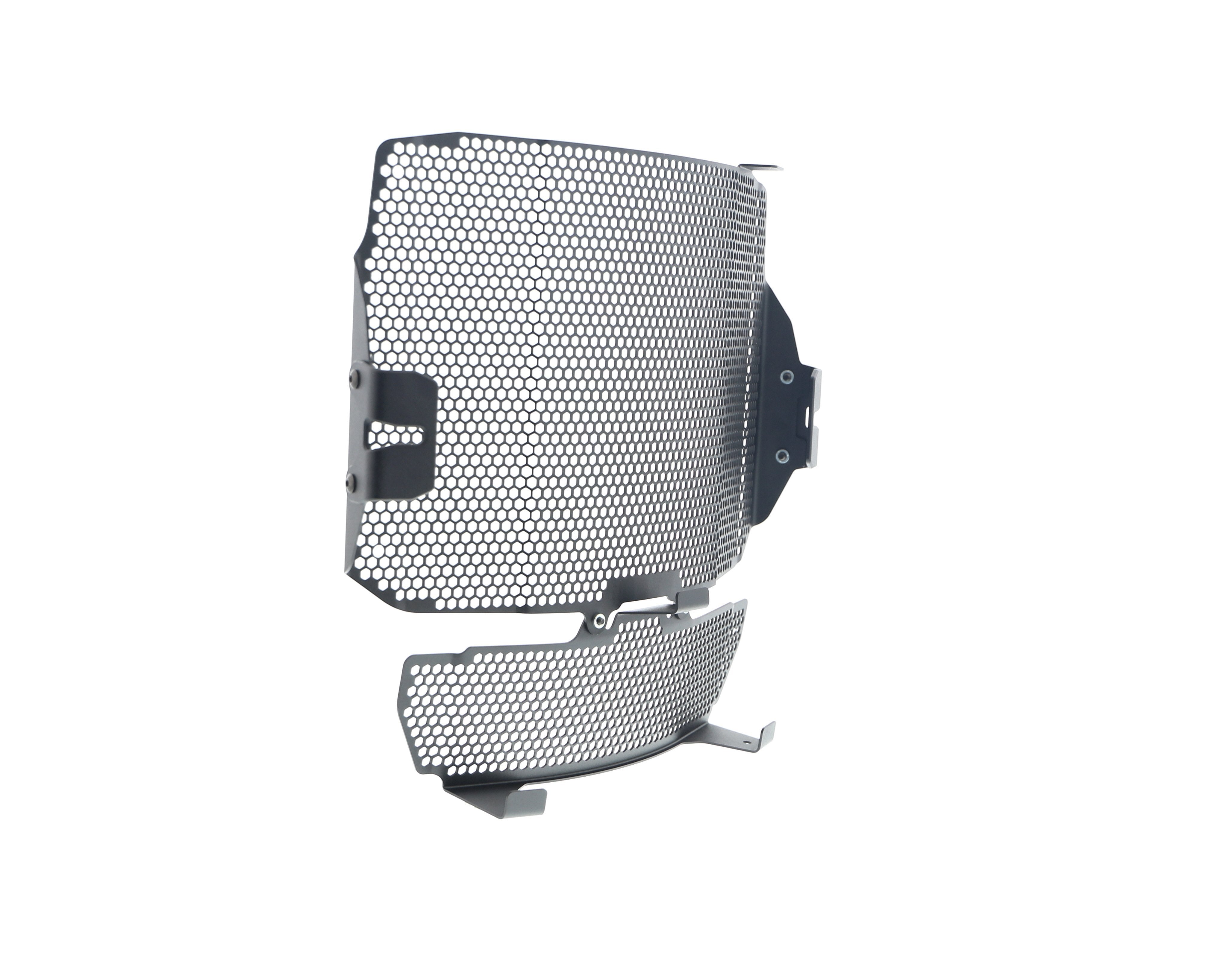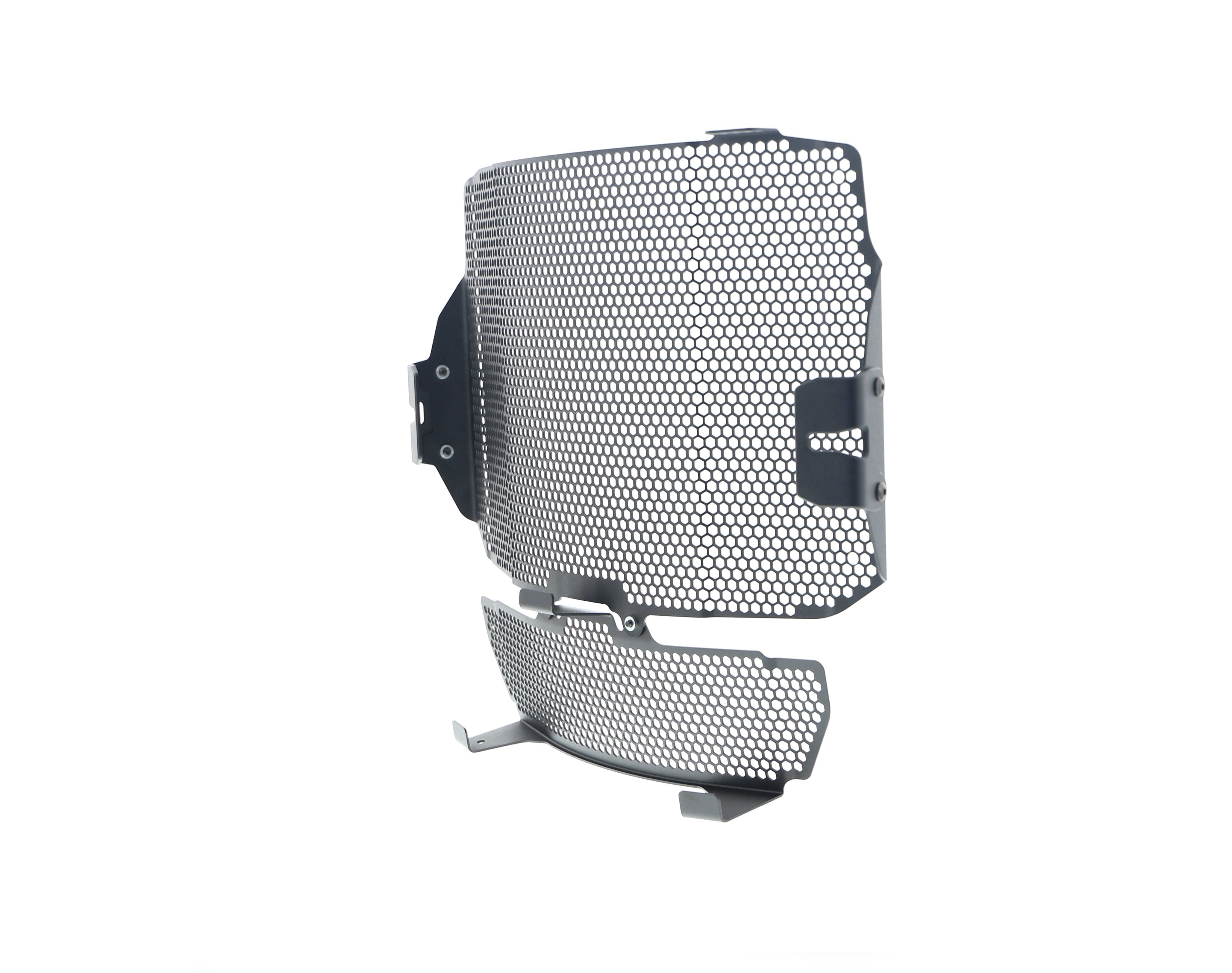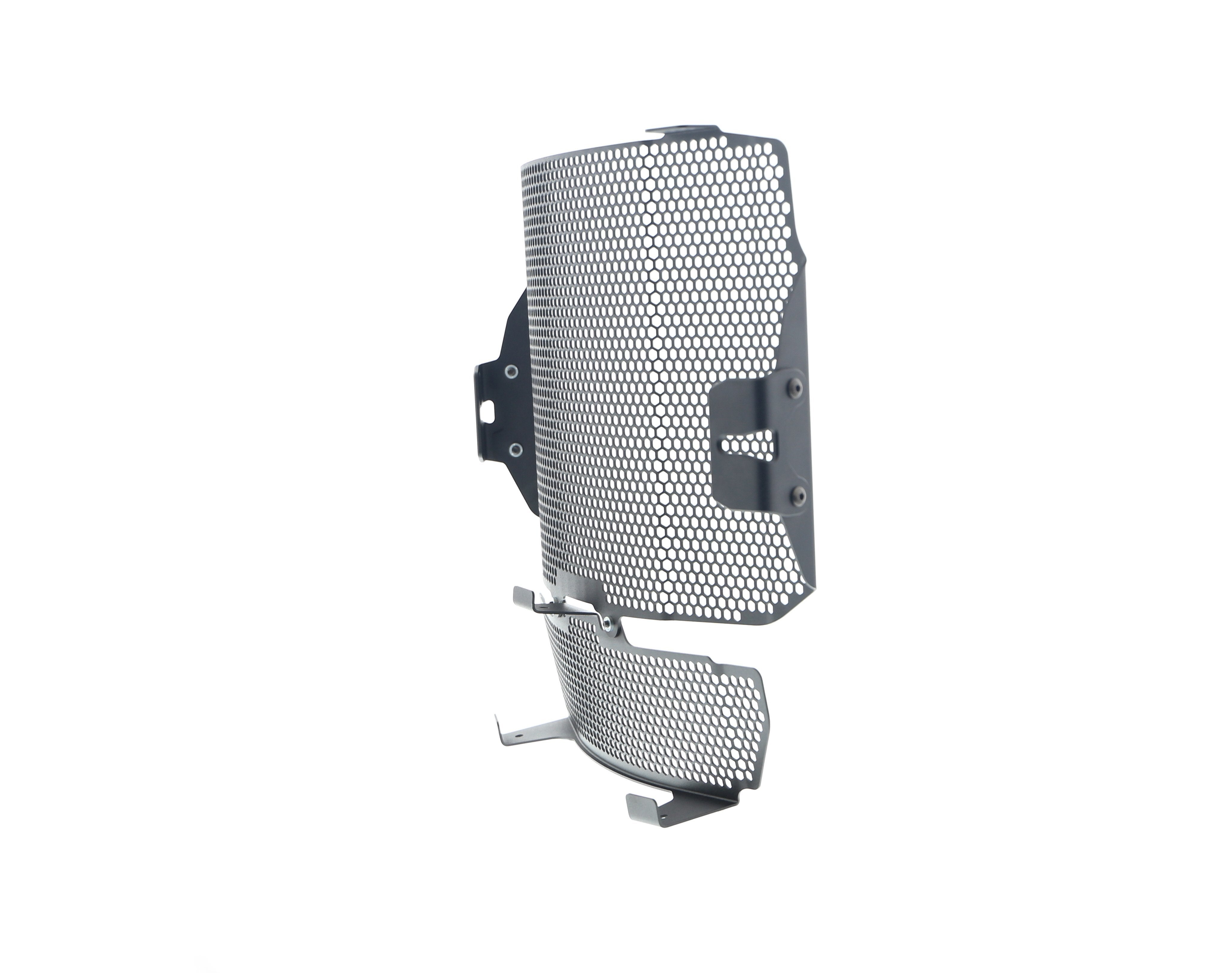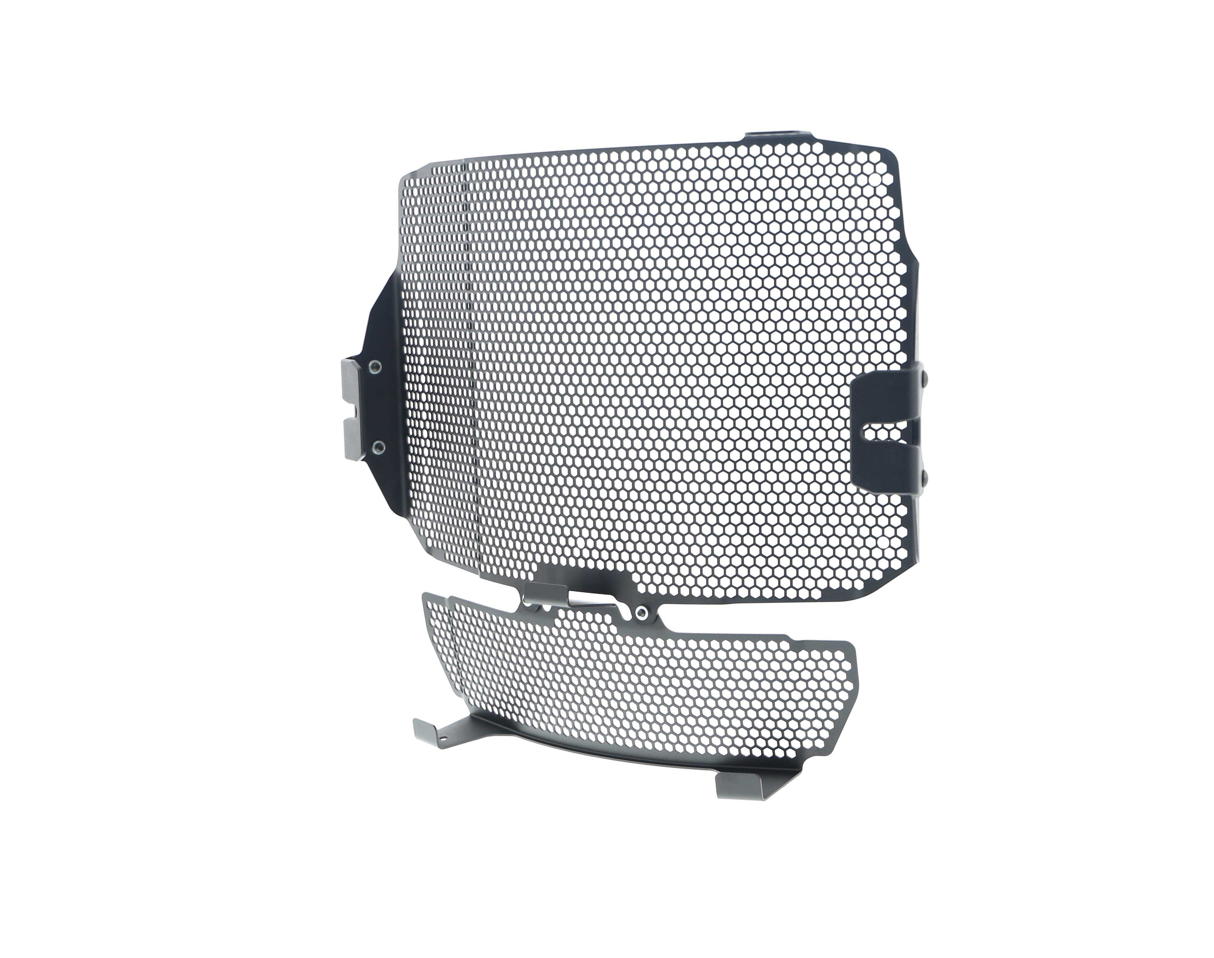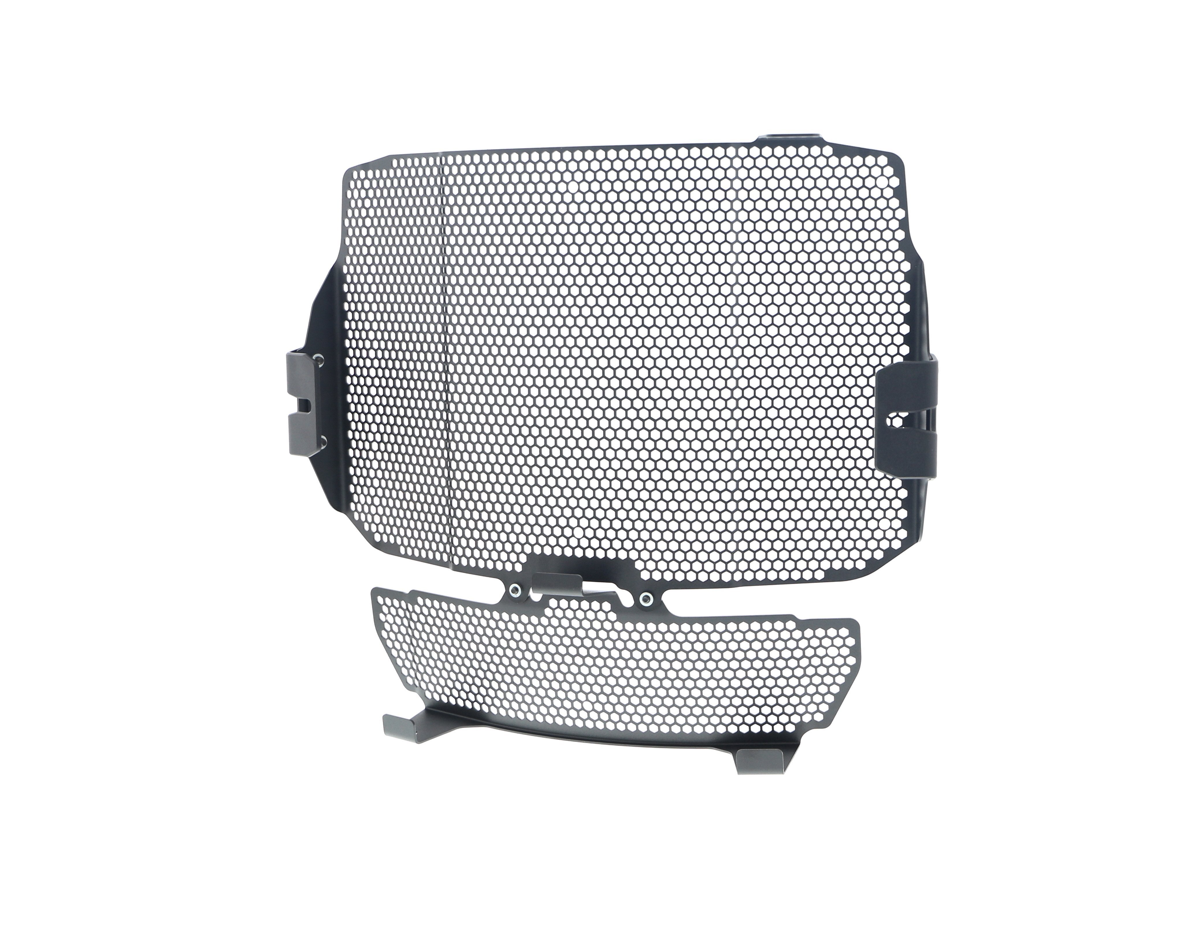 Motorcycle radiators and oil coolers are positioned so they are not restricted to the open air and passing airflow, both of which are required to cool engine coolant flowing through their internal cores. Unfortunately, radiators are also 'open' to damage from road debris. The MV Agusta Dragster RR SCS EP Radiator & Oil Cooler Guard Set is designed to protect the delicate cooling fins and internal galleries by preventing stones, grit etc from 'shot blasting' or, worse, puncturing the radiator and oil cooler's delicate aluminium construction to cause them to leak. The result of which will be overheating, which, in turn, can result in engine damage.