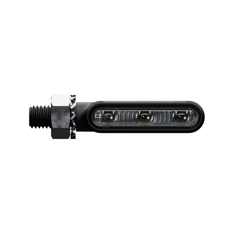 Die perlgestrahlte und matt schwarz eloxierte Oberfläche des Aluminiumgehäuses unterstreicht den hochwertigen technischen Look. Das flache LED Modul erzeugt ein klares und sehr gut sichtbares Blinksignal sodass du im Straßenverkehr zuverlässig wahrgenommen wirst. Optik und Funktionalität gehen hier perfekt Hand in Hand.