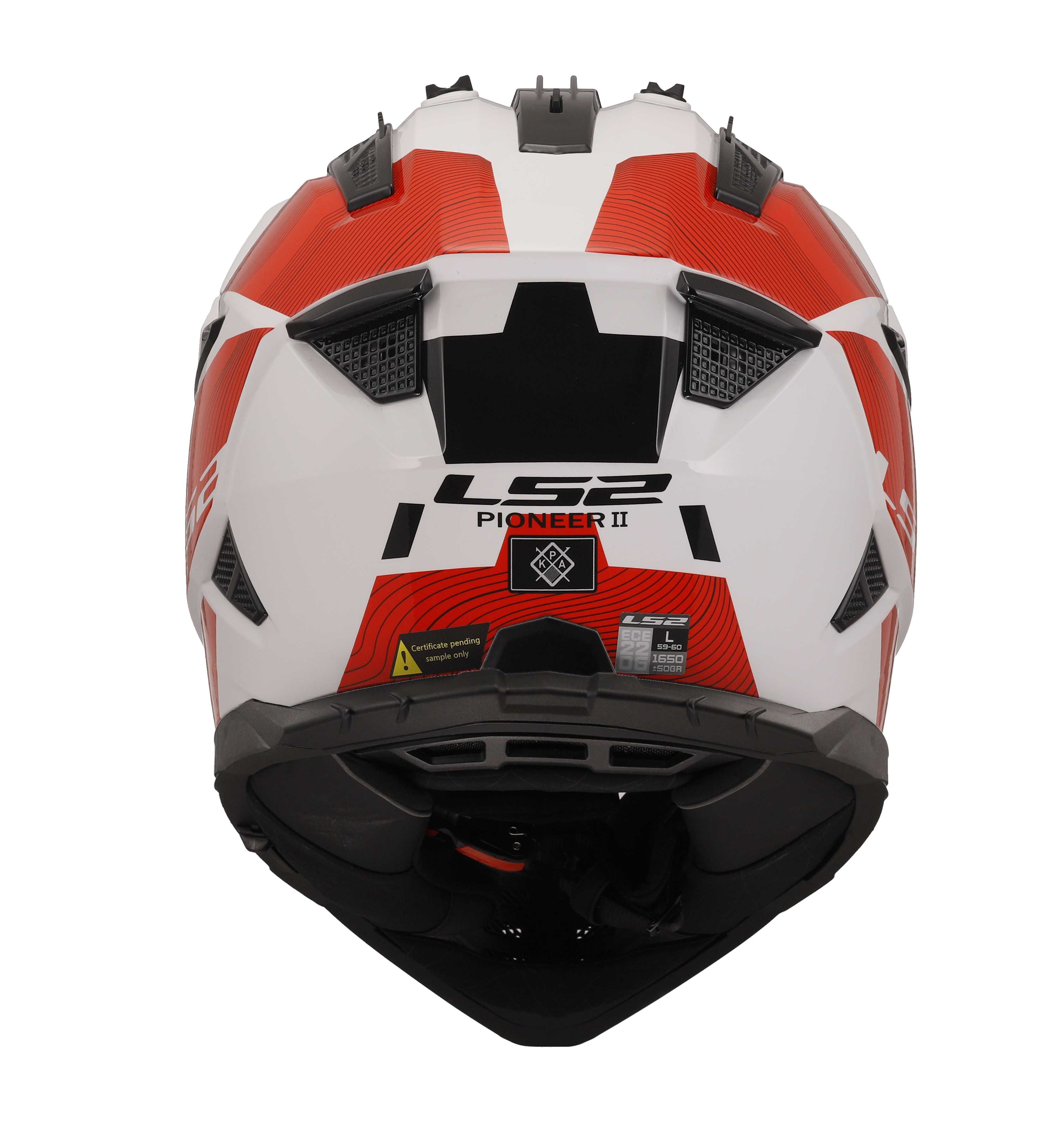 Für optimale Sicherheit sorgen Notfall-Entriegelungssystem, verstärkter Kinnriemen, Multi-Dichte EPS sowie eine metallische Sicherheitsplakette. Mehrere Top Air Intakes, diverse Exhaust Ports und ein EPS mit integrierten Lüftungskanälen garantieren konstanten Luftstrom – perfekt für lange Touren und warme Tage.