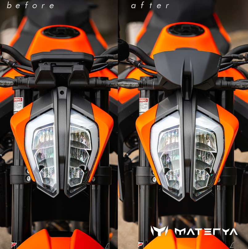 Die Instrumentenabdeckung für KTM Duke 790 und 890 ist eine maßgefertigte Abdeckung die sowohl optisch als auch funktional überzeugt. Sie wurde so gestaltet dass sie perfekt zur Form des Scheinwerfers passt und dadurch ein harmonisches und stimmiges Gesamtbild an der Front des Motorrads erzeugt.