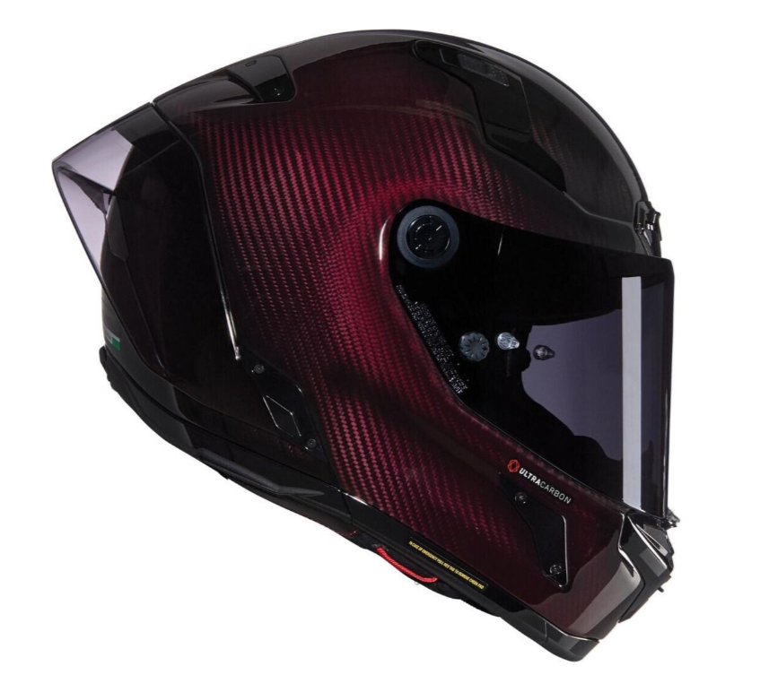 Das ultrabreite, flache Visier mit Anti-Kratz-Beschichtung und Sicherheitsverriegelung bietet ein enormes Sichtfeld und ist mit einem Pinlock®-Innenvisier gegen Beschlagen ausgestattet. Für maximale Sicherheit verfügt der Helm über das NERS Notfall-Wangenpolstersystem, einen Doppel-D-Verschluss sowie die ECE 22.06 Homologation. Ein Helm, der kompromisslose Performance mit italienischem Racing-Design verbindet.
