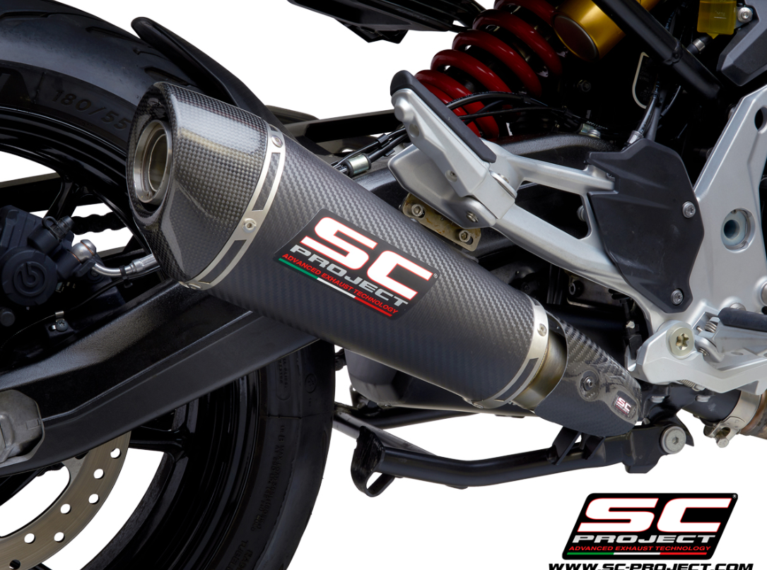 Der Auspuff ist EURO5 homologiert. Wird mit einer Carbon-Abdeckung geliefert die mit Autoklavverfahren hergestellt wird. Der Auspuff kann in 2 verschiedenen Positionen montiert werden: high, um einen sportlerischen Charakter oder low für die Befestigung der Originalseitenkoffern. Diese Einstellung ist schnell und einfach.