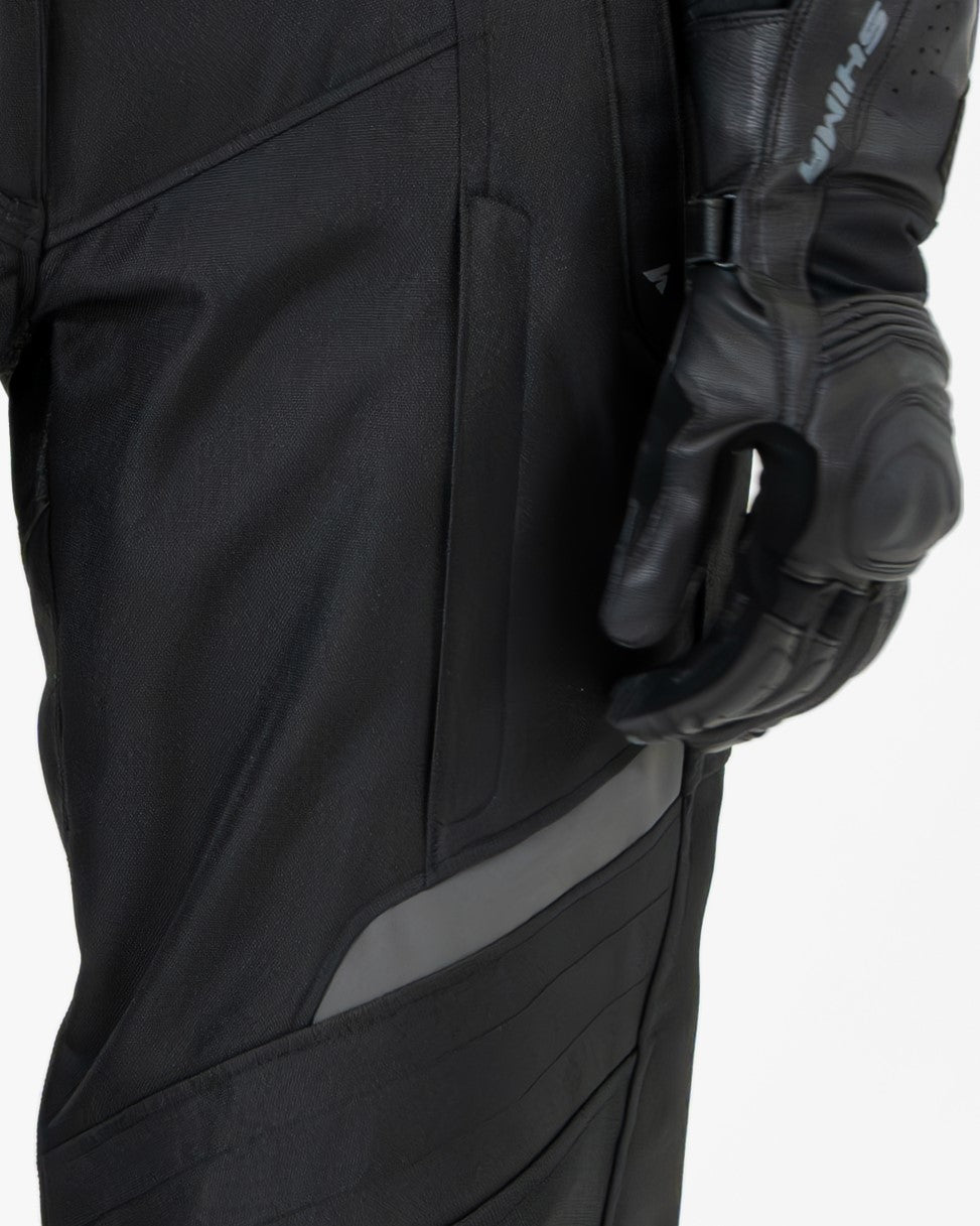 Gefertigt aus abriebfestem Textilgewebe, bietet die Hose zuverlässigen Schutz bei gleichzeitig hohem Tragekomfort. CE-zertifizierte Knieprotektoren sind bereits integriert, und Taschen für optionale Hüftprotektoren sind ebenfalls vorhanden. Belüftungsreißverschlüsse an den Oberschenkeln sorgen für Luftzirkulation an wärmeren Tagen. Dank verstellbarer Weiten an Taille und Hosenbein lässt sich die Passform individuell anpassen. Reflektierende Details verbessern die Sichtbarkeit bei schlechten Lichtverhältnissen. Die Hose lässt sich über einen Reißverschluss mit passenden SHIMA-Jacken kombinieren.